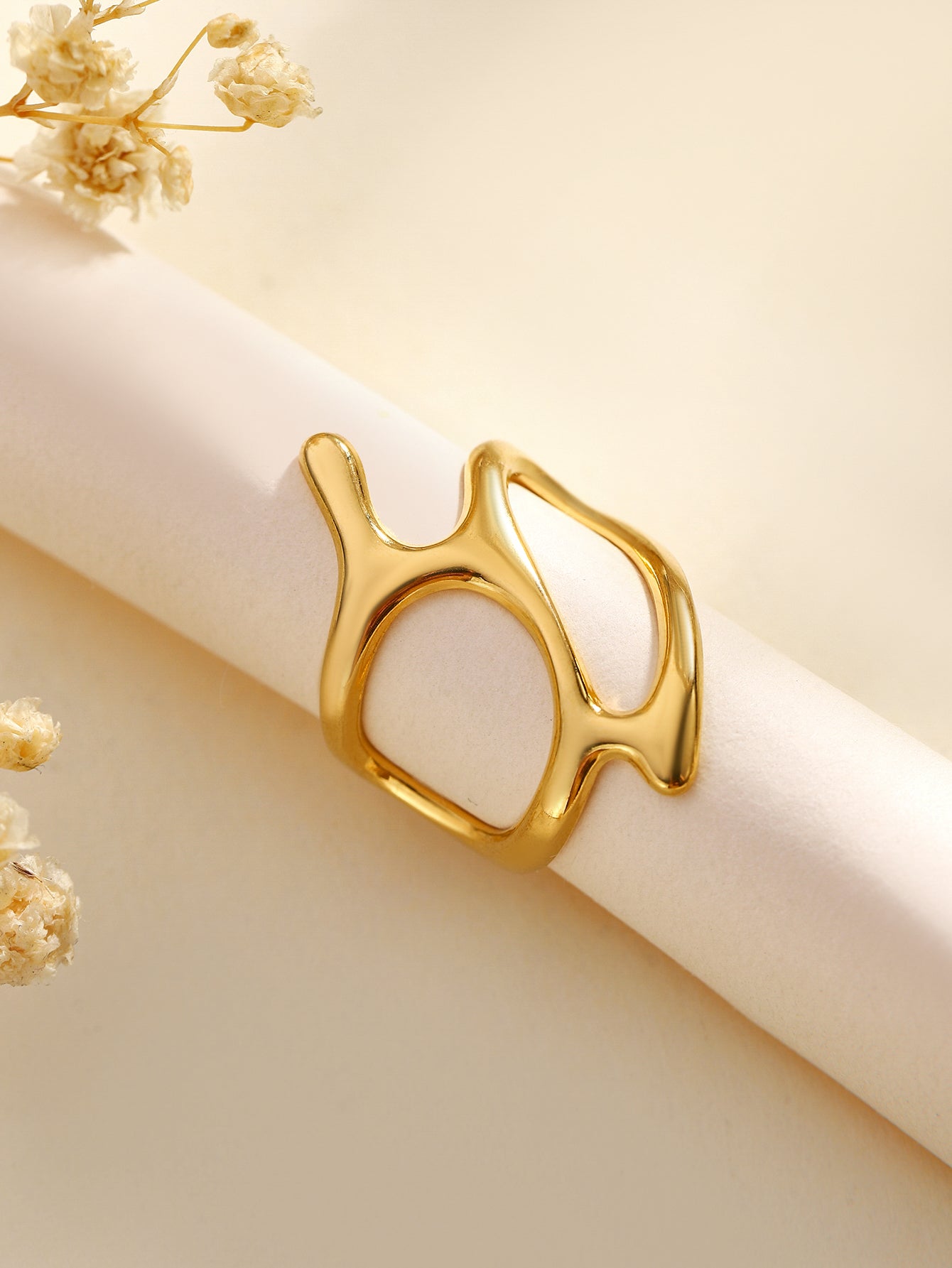 The Faye Ring combines timeless elegance with everyday wearability. In an organic design, it offers a graceful accent to any outfit, providing a subtle yet stylish statement.